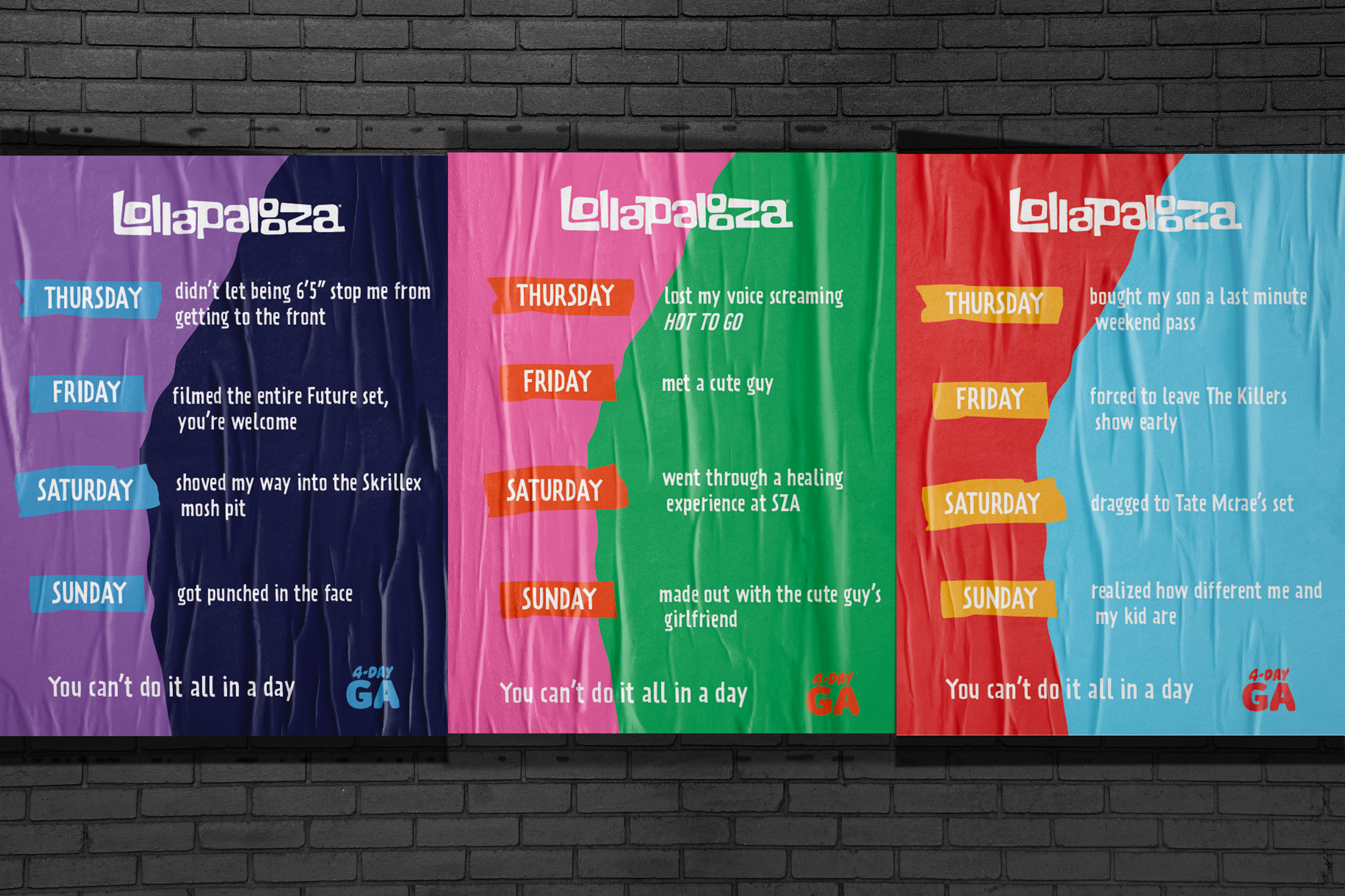 Lollapalooza offers more than any one day alone can give you. This campaign encourages fans to get the 4-day pass, so they don’t miss a single moment of what makes the festival unforgettable.